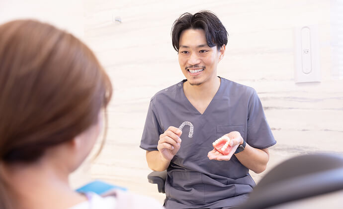 カウンセリングの内容と精密検査の結果をもとに、インビザライン認定医の資格を持つ歯科医師が治療計画を作成します。患者さんへの説明の際には、治療期間や費用についてもできるだけわかりやすく丁寧に説明しますので、ご不明点や気になることがあれば、遠慮なくお尋ねください。